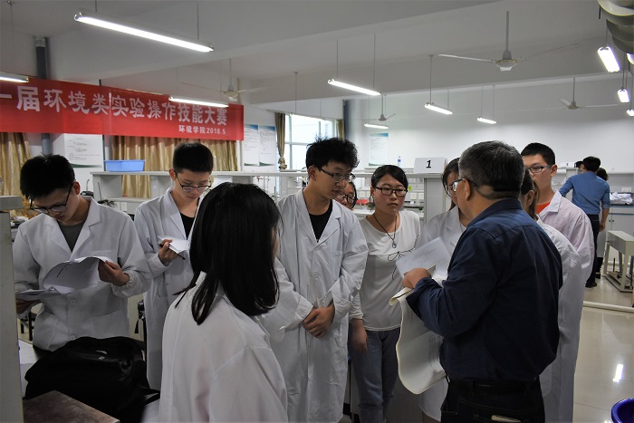 为进一步激发大学生对专业知识的兴趣,增强创新意识,提高实验操作技能,在资源保障部、教学事务部的大力支持下,5月23日下午,由金沙js4399首页团委主办的南京工业大学第一届环境类实验操作技能大赛项目现场决赛在环境学科楼303、305实验室成功举办。决赛现场邀请到了金沙js4399首页张雪英、周桃玉、李磊、罗平、王海玲、赵维、袁青彬老师担任评委。本次大赛面向我校江浦校区全体本科生,共计250余名来自环境、化工、城建学院的同学积极参与。