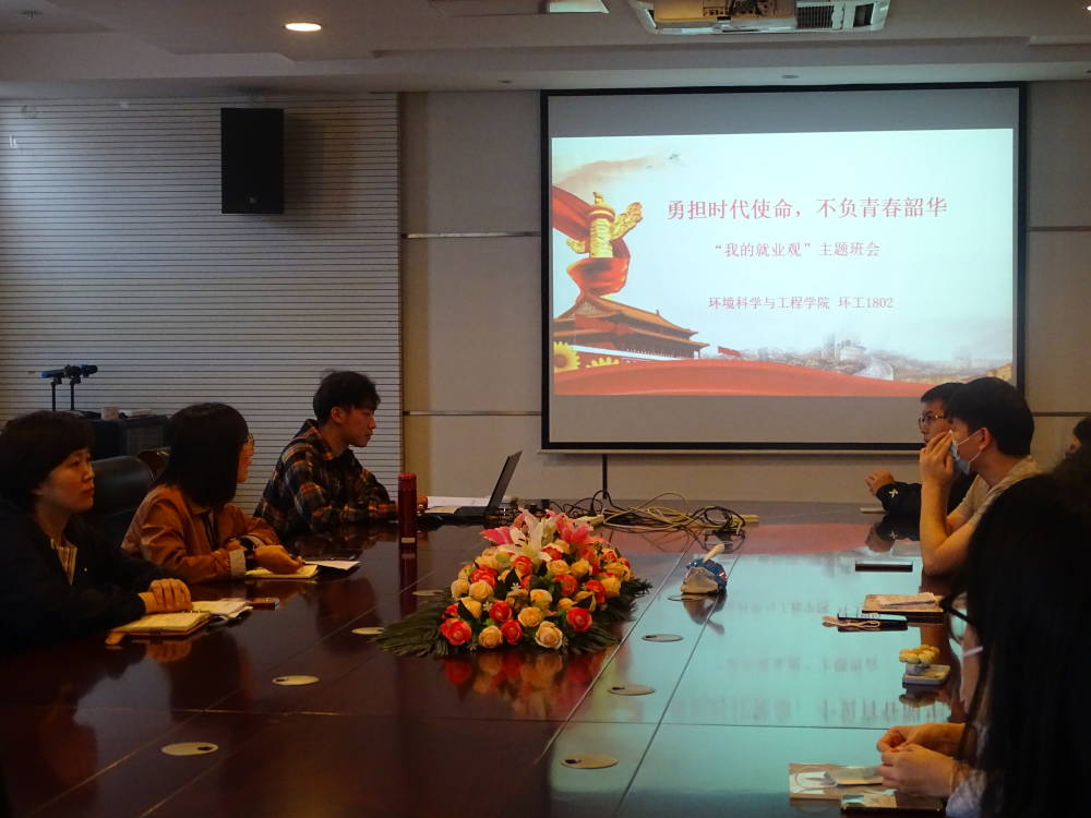 为有效促进2022届毕业生充分就业,金沙js4399首页环工1802班于5月10日在尚德楼B2 504召开“勇担时代使命,不负青春韶华”--我的就业观主题班会。学院党委副书记张莼波、2018级辅导员戚旸及环工1802班全体同学参加。