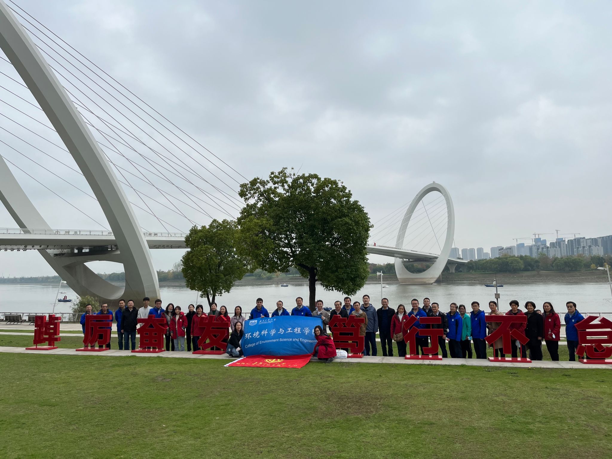 本次活动从江浦校区生工学科楼前乘车出发,到达青奥文化体育公园,途径南京眼步行桥,江心洲健身步道,全长共5公里,历时两个小时。秋末冬初,空气清新,清风吹拂,南京眼周边科技感十足的现代建筑与江心洲城市秘境般的生态绿岛交相辉映,沿途美景既有深秋的斑斓色彩,又有浅冬的诗意浪漫。大家一边欣赏沿途美景,用手机相机记录这美好的时刻,一边畅聊工作和生活,放松身心。