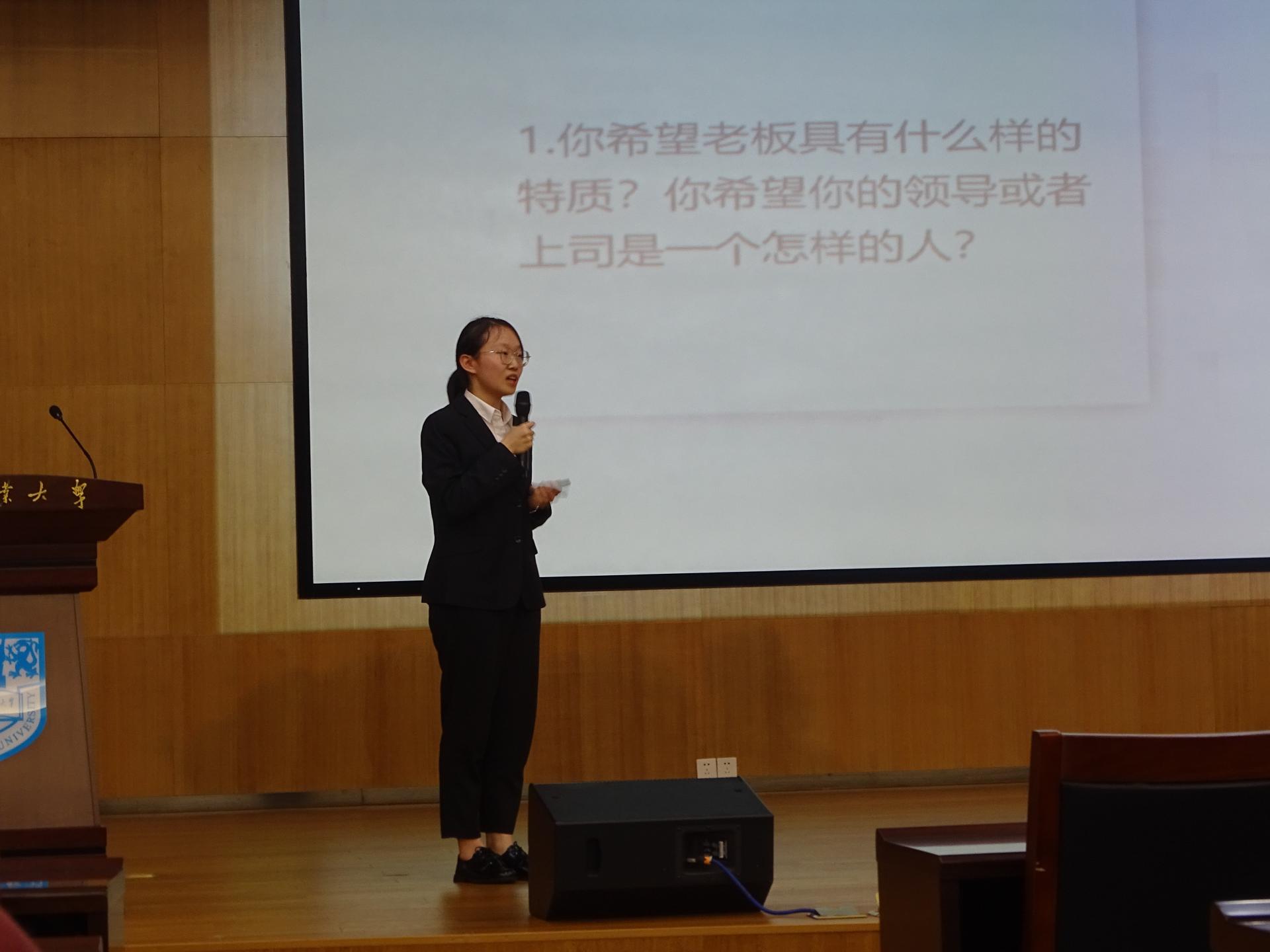 比赛中,选手们逐个上台分别进行两分钟自我展示及五分钟结构化面试,他们沉着应对,尽情展现自己的风彩,出色的表现时常引起热烈的掌声,获得了评委老师们的肯定。在点评环节,梅红源老师从选手的舞台站位、PPT细节、答题思路等方面为本次比赛进行了精彩点评,他肯定了同学们在面试细节方面的“小巧思”,同时也鼓励同学们继续努力,不断提高自身综合素质。