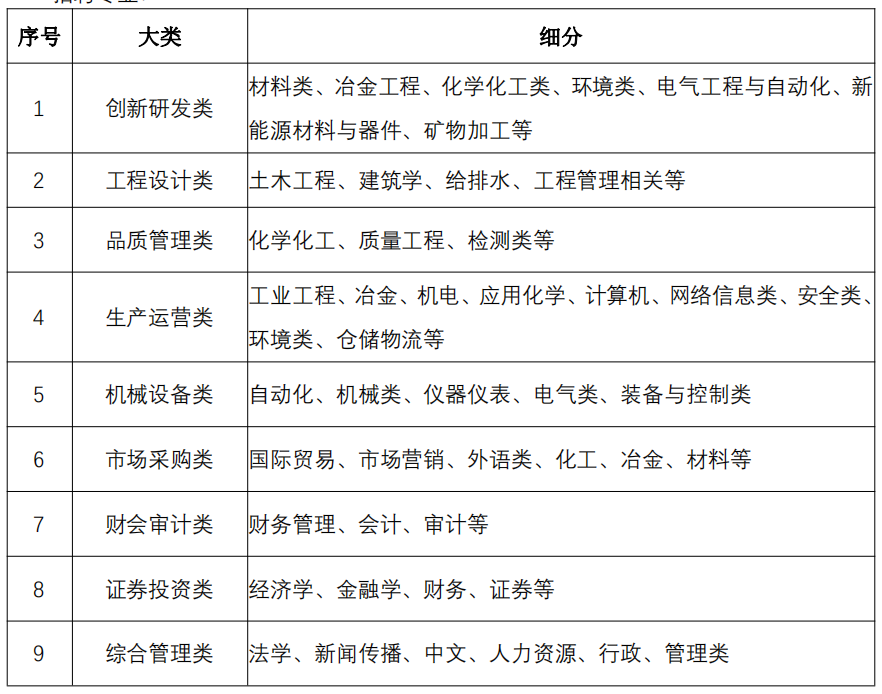 3、招聘专业: