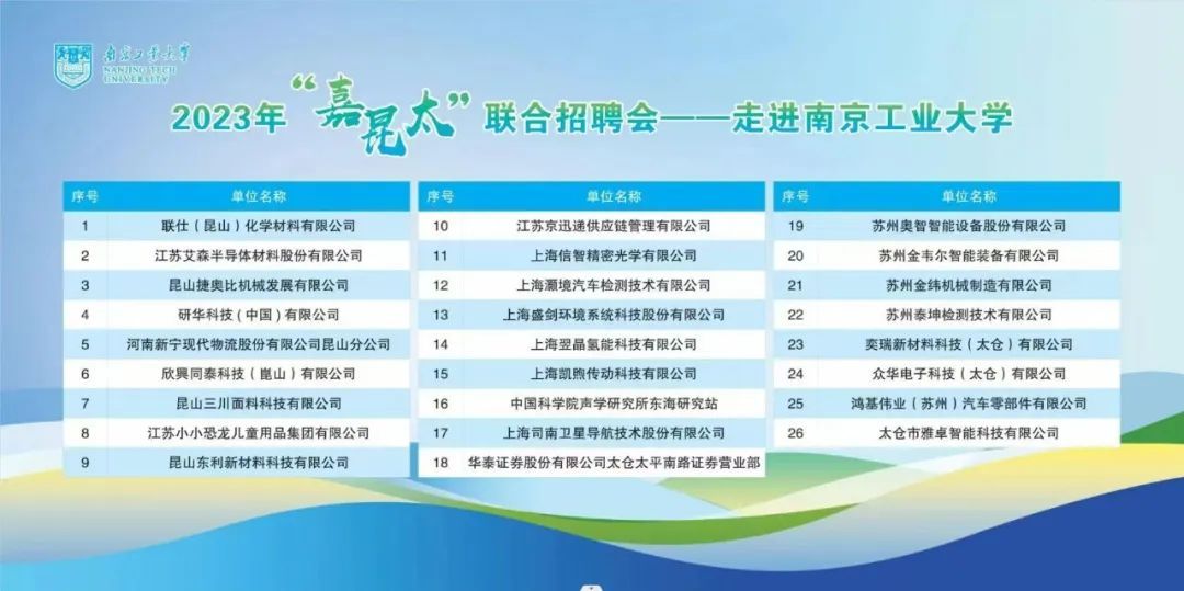 招聘会 | 2023年“嘉昆太”联合招聘会——走进南京工业大学