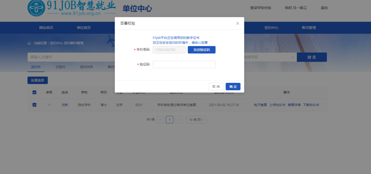 单位提交签约授权申请后,由主站进行审核,审核通过后,单位才能向学生发起签约邀请。
