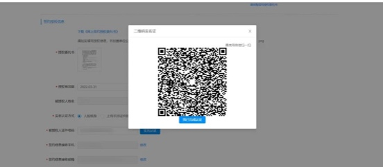 经办人选择“人脸核身”进行实名认证,根据页面提醒,微信扫码完成认证。