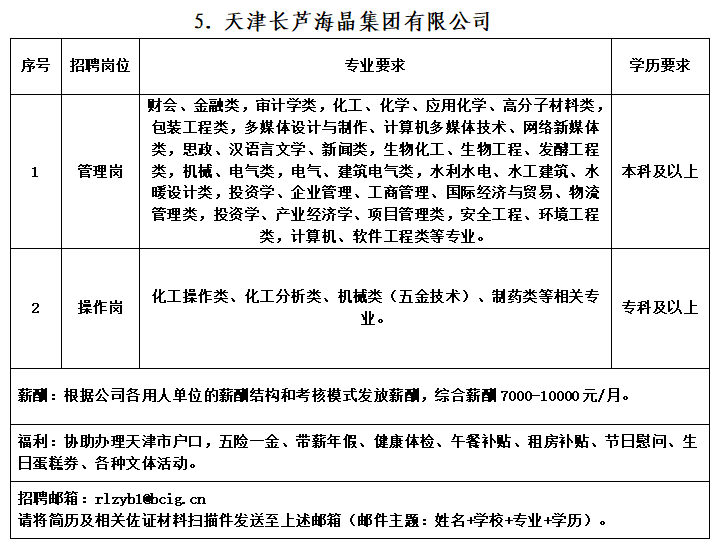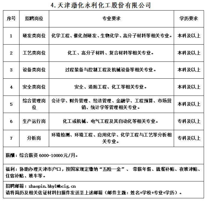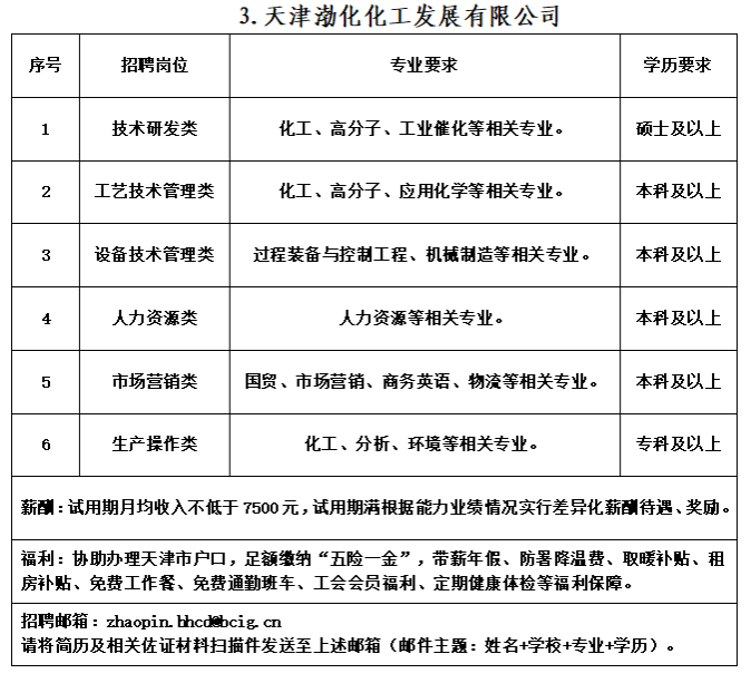校园招聘 | 天津渤海化工集团有限责任公司所属企业招聘2024届高校毕业生公告