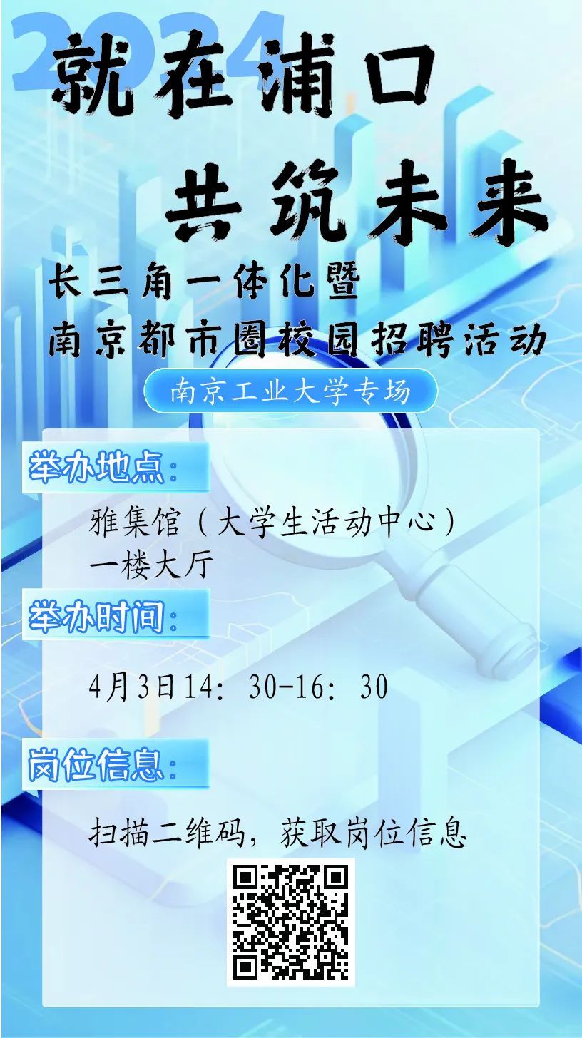 招聘会 | 就在浦口 共筑未来 长三角一体化暨南京都市圈校园招聘活动 南京工业大学专场