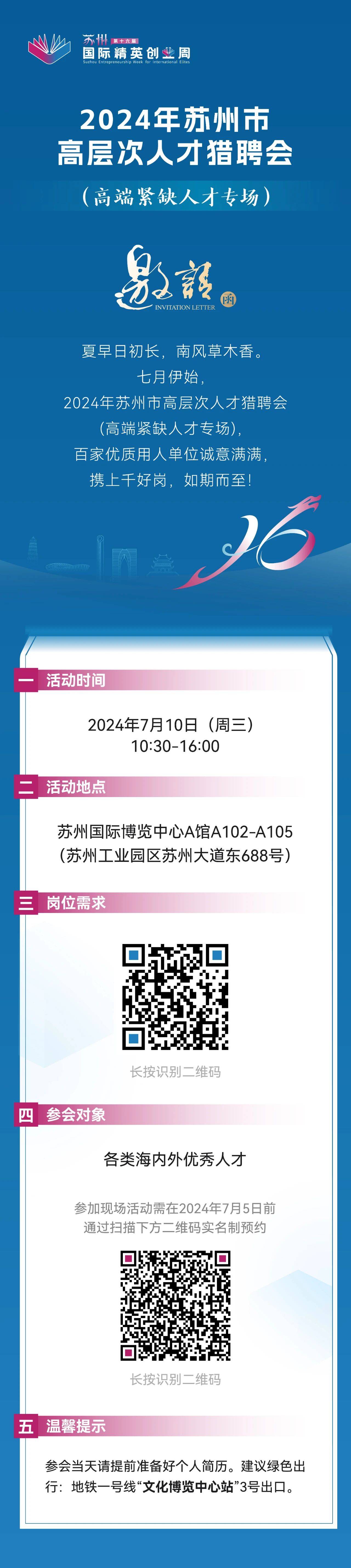 招聘会 | 7月10日!2024年苏州市高层次人才猎聘会携千个好岗等你来!