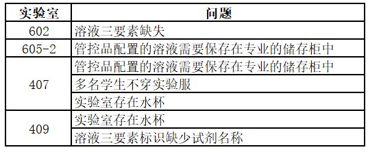 检查发现以下问题,请各实验室尽快整改到位。