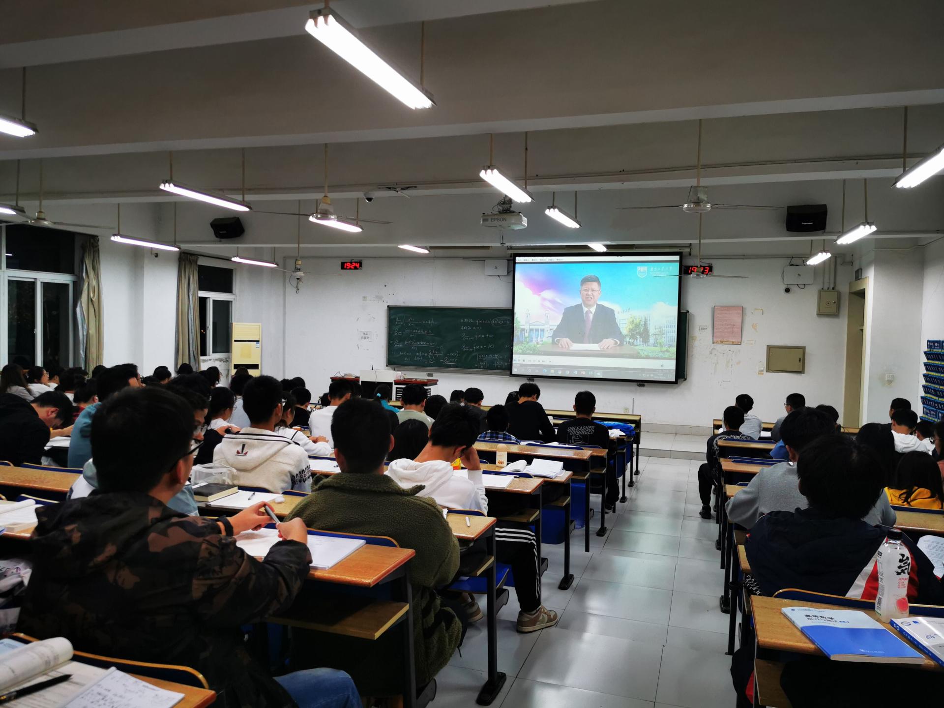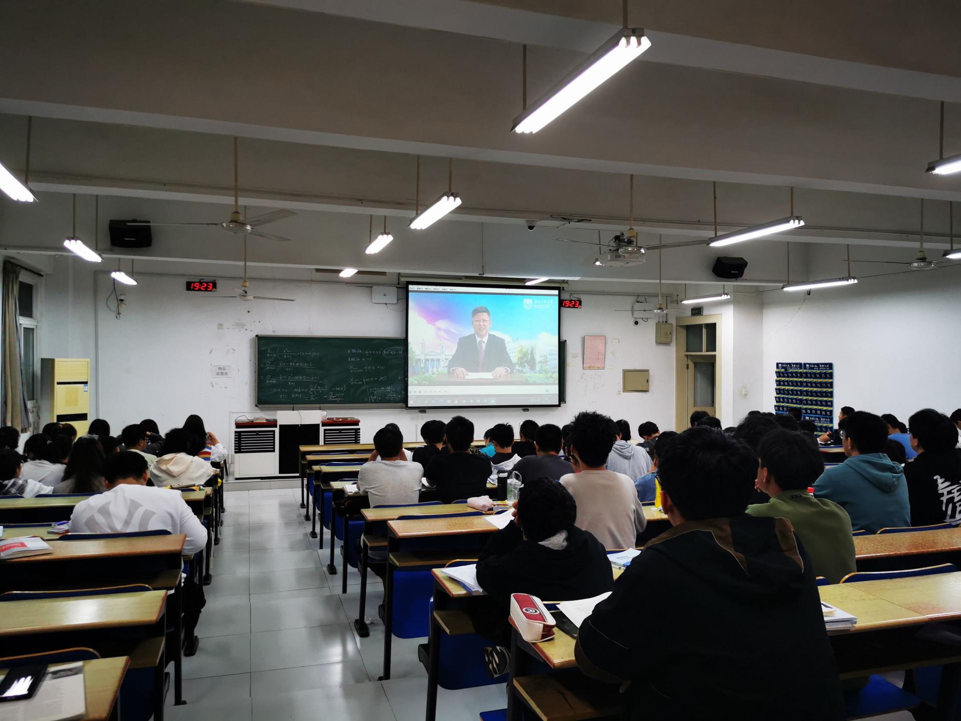 10月25日晚,金沙js4399首页组织全体新生集中观看校党委书记芮鸿岩讲授入学“第一课”视频。