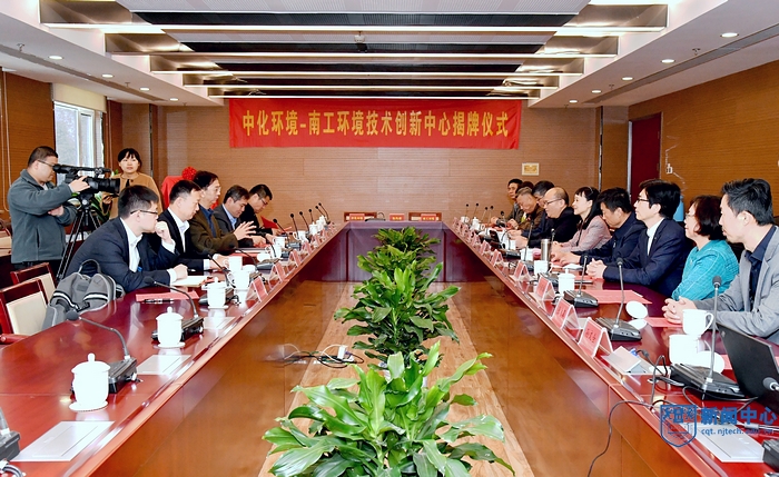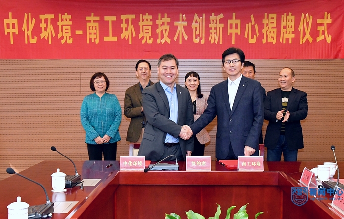 11月9日,我校与中化集团旗下的中化环境控股有限公司(以下简称“中化环境”)合作共建技术创新中心签约暨揭牌仪式在我校工业“三废”强化处理与资源化协同创新中心所在的江北新区新材料科技园研发中心举行。