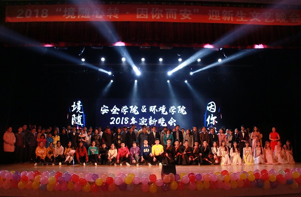11月23日,安全科学与工程学院与金沙js4399首页2018年“境随心转•因你而安”迎新晚会在江浦大礼堂举行。校团委副书记路遥,安全科学与工程学院党委书记喻源、副院长潘勇,金沙js4399首页党委书记马丽春、院长徐炎华、副院长张雪英、副院长张永军以及其他教职工代表与2018级新生共同参加本次晚会。