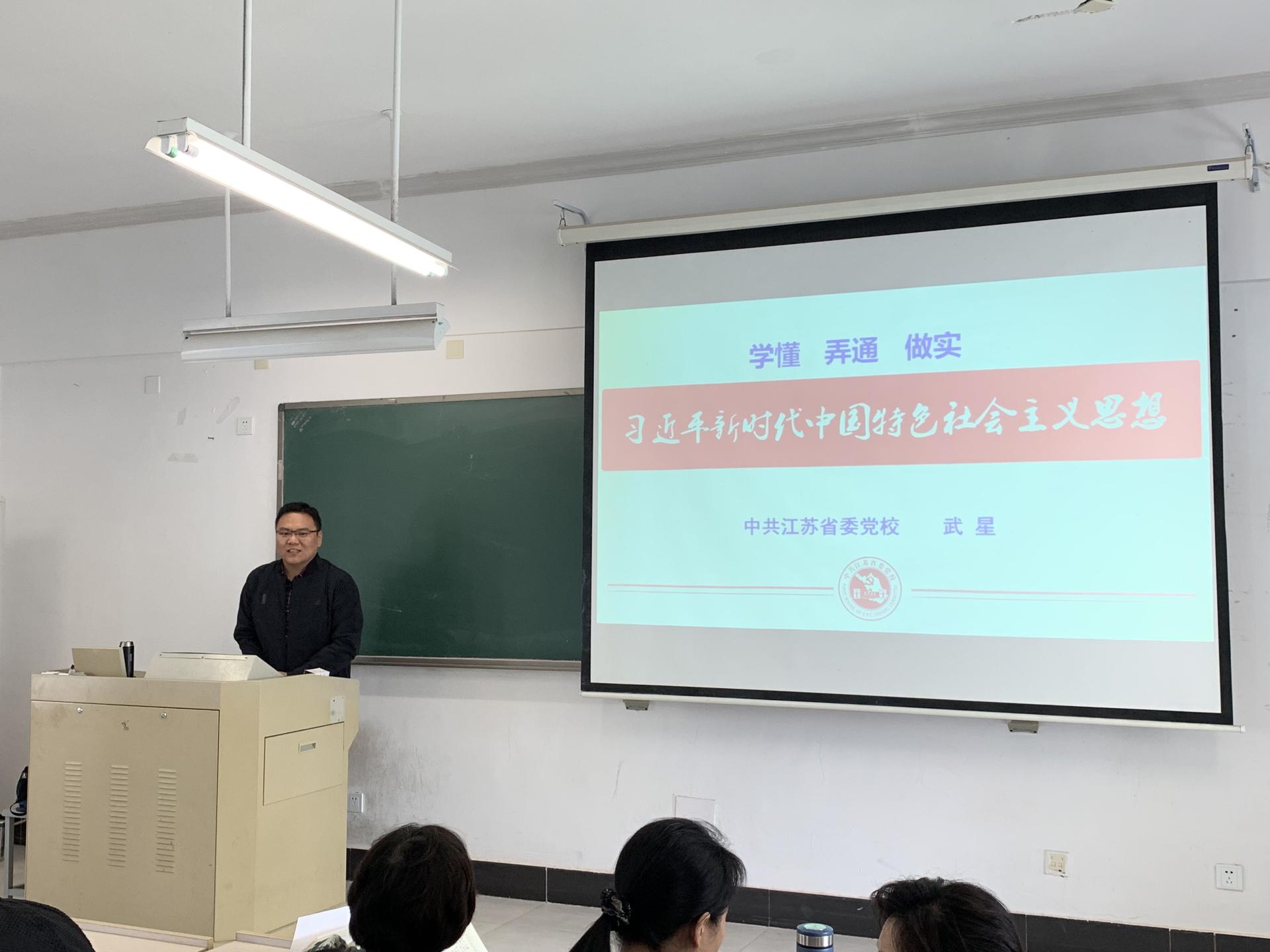 10月17日上午,金沙js4399首页邀请中共江苏省委党校党史党建教研部武星博士来校作题为《学懂弄通做实习近平新时代中国特色社会主义思想》的专题辅导。学院教工党员及学生党员共同聆听了本次讲座。