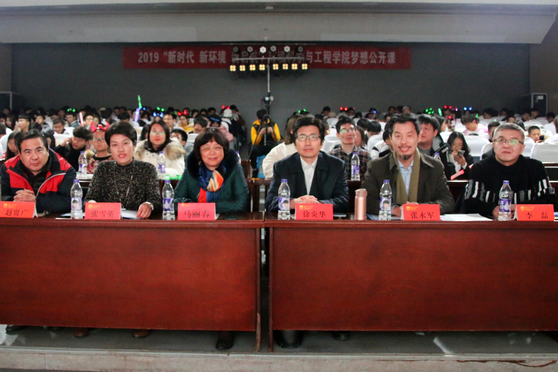 11月27日晚,金沙js4399首页庆祝新中国成立70周年暨“新时代,新环境,新启航”梦想公开课在逸夫图书馆一楼报告厅成功举办。学院党委书记马丽春,院长徐炎华,副院长张雪英,副院长张永军及教职工代表与2019级新生共同参加。