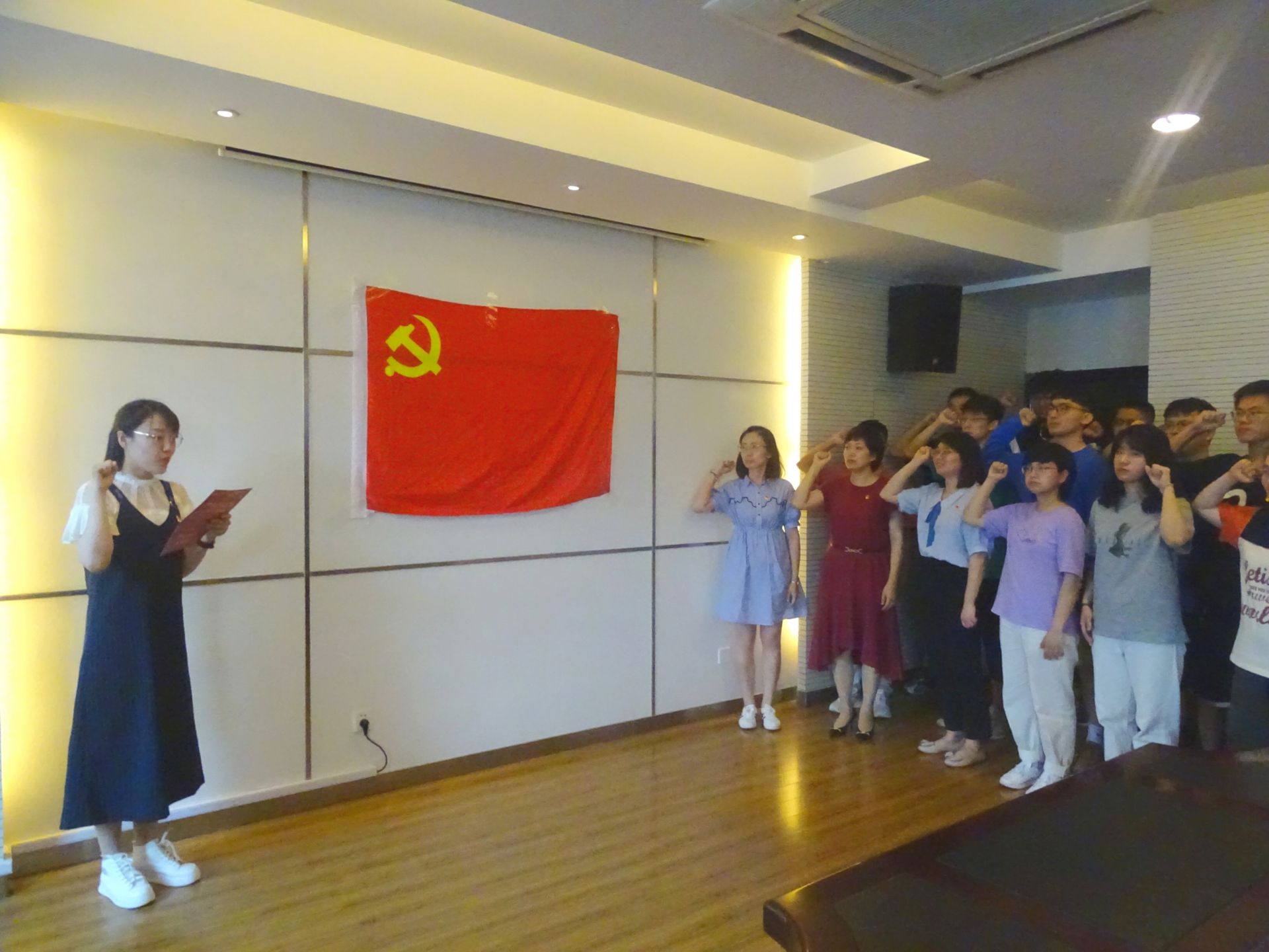 全体党员共同奏唱《国际歌》。党员代表围绕大学四年的成长和收获发言,他们表示,将在今后的学习、工作、生活中将继续发挥党员作用,做新时代的环境人。全体师生党员在张乐涵老师的领誓下,重温入党誓词。