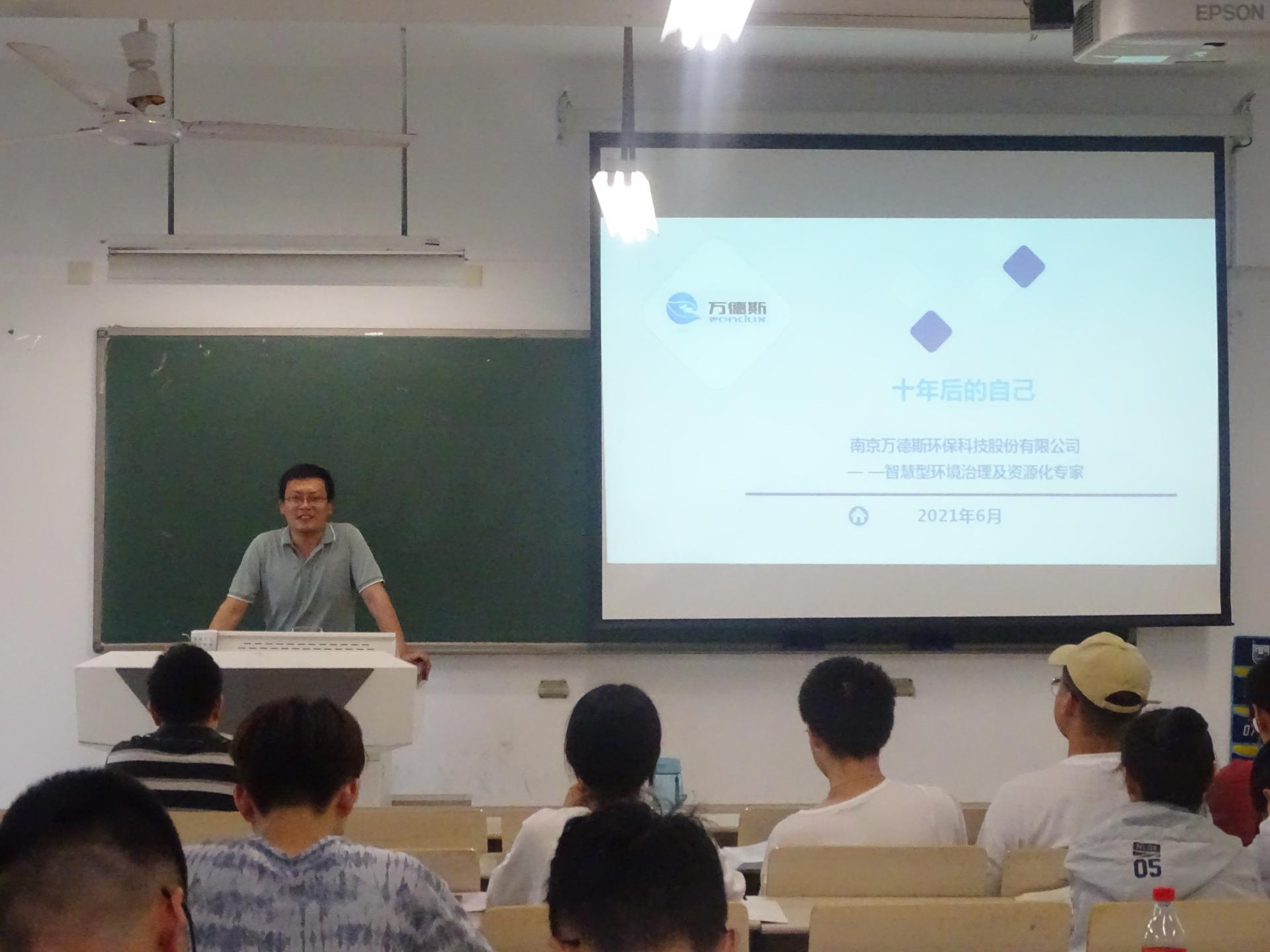 6月16日下午,金沙js4399首页2010届优秀校友、南京万德斯环保科技股份有限公司技术部经理王志磊,应邀为学院本科生作本学期第二场就业指导专题讲座。2021届部分毕业生、2022届全体毕业生生参加本次讲座,讲座由2021届毕业班辅导员陈亚会主持。