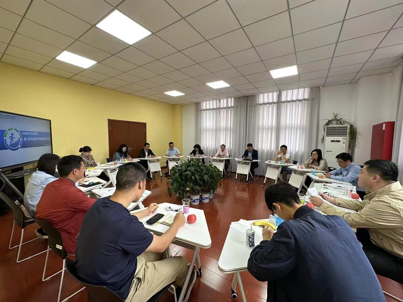 为加强教学与学工协同育人作用,5月12日,金沙js4399首页在校工会亚青“餐叙时光”研讨室召开教-学共同体学风建设研讨会。学院党委书记周华、党委副书记张莼波、院长助理朱兆连、院办主任吴平、各系主任、全体班主任、全体辅导员参加会议。会议由张莼波副书记主持。
