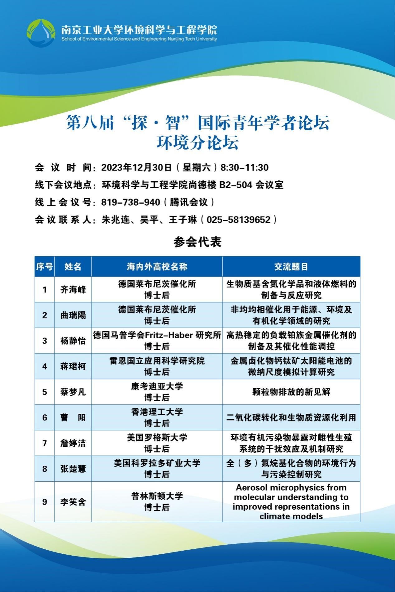 12月30日上午,第八届“探•智”国际青年学者论坛环境分论坛在学院B2-504会议室举行。学院党委书记周华、院长仲兆祥、副院长徐海涛、院长助理朱兆连、部分骨干教师和研究生参加了本次论坛活动。论坛由院长仲兆祥主持。