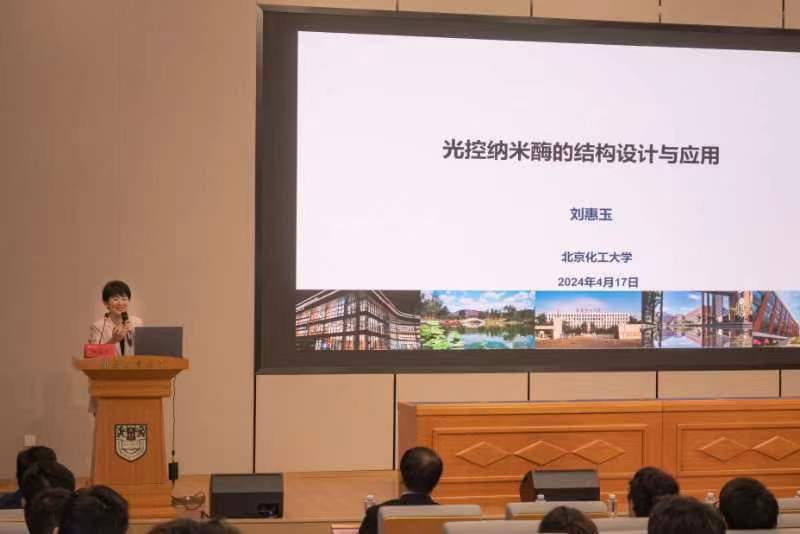 刘惠玉教授以“光控纳米酶的结构设计与应用”为学术报告主题,围绕纳米酶领域中的瓶颈问题,介绍了课题组近期在“光控纳米酶”方面的最新研究成果,包括MOFs衍生的类卟啉单原子和可降解多孔钯纳米片等多种光控纳米酶材料,系统总结了课题组在构筑多种位点明确、活性可调的纳米酶催化体系的相关进展。
