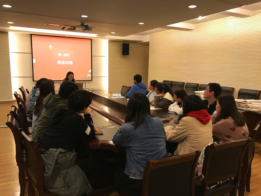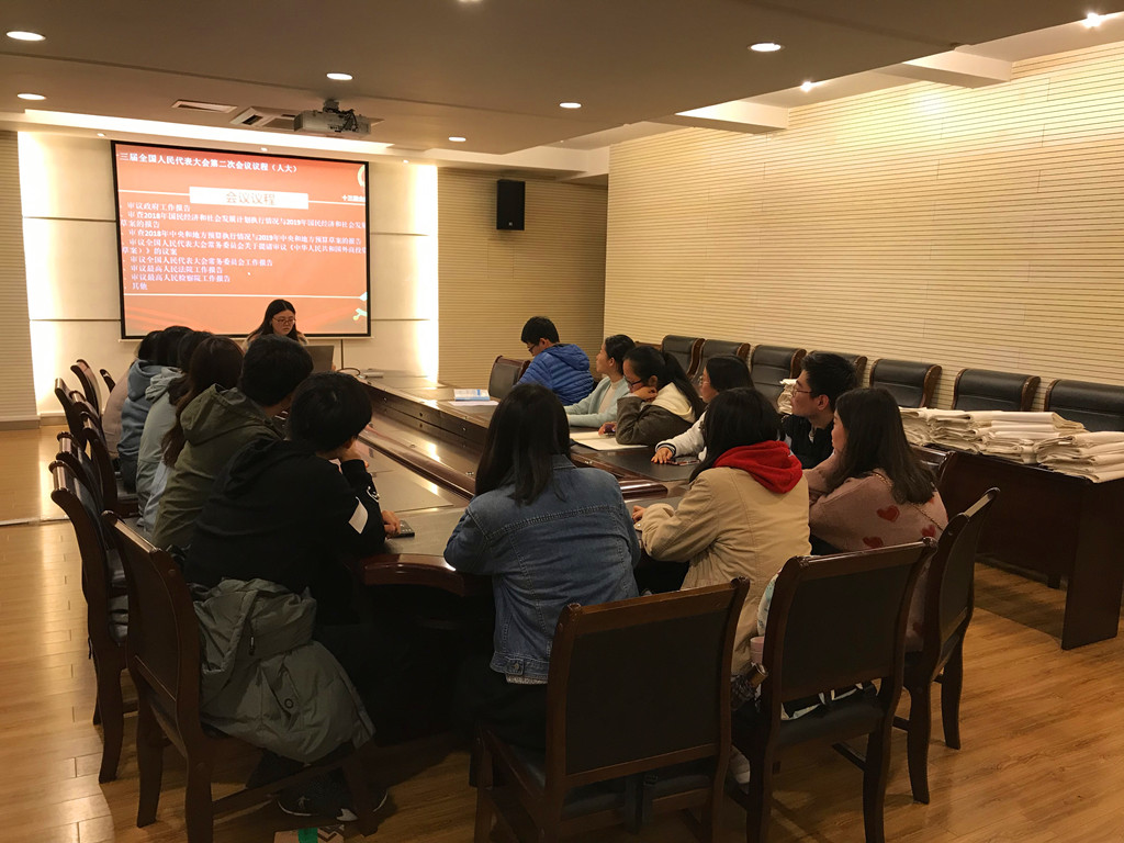 为深入学习“两会”精神,增强大学生的思想政治理论素养,2019年3月19日,金沙js4399首页本科生第一党支部在学院504会议室由党支部书记苏心主持并组织开展了本支部的三月份组织生活会,本次会议的主题是“两会”精神集中学习研讨会。