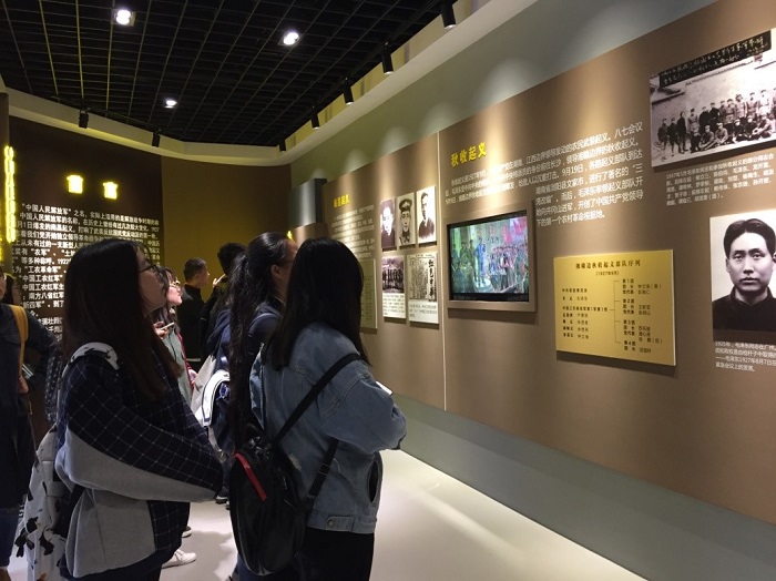 进入园区,大家一起参观了国防教育馆,面对一张张历史的照片、一件件烈士的遗物,一个个展室,追忆革命先辈们的英勇事迹,感受到战争年代的艰苦卓绝,更感受到国防对中国抗战胜利的重要性。参观国防教育馆之后,在军事模型广场,由本科生第二党支部书记季业坤领誓,在场全体党员面对国旗和党旗重温入党誓词,同学们慷慨激昂,志气满怀。