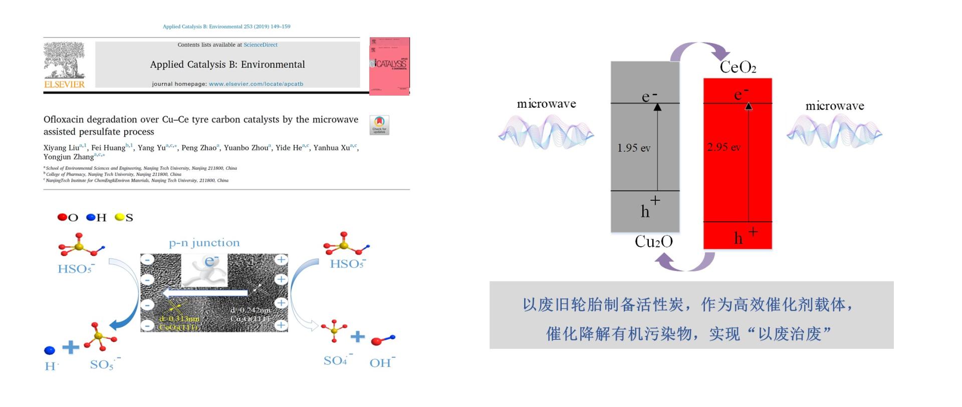 针对该问题,我院研究生刘西扬在张永军和于杨老师的指导下,以废旧轮胎作为原料,经过破碎、磁选和低温热解等处理过程得到轮胎碳材料,并以铜铈两种金属作为活性组分进行负载,经过高温过程制备得到了新型高效铜铈轮胎碳催化剂,实现资源利用和以废治废。相关成果已被环境类Applied Catalysis B: Environmental(IF=11.698),并已于近日正式在线刊出。