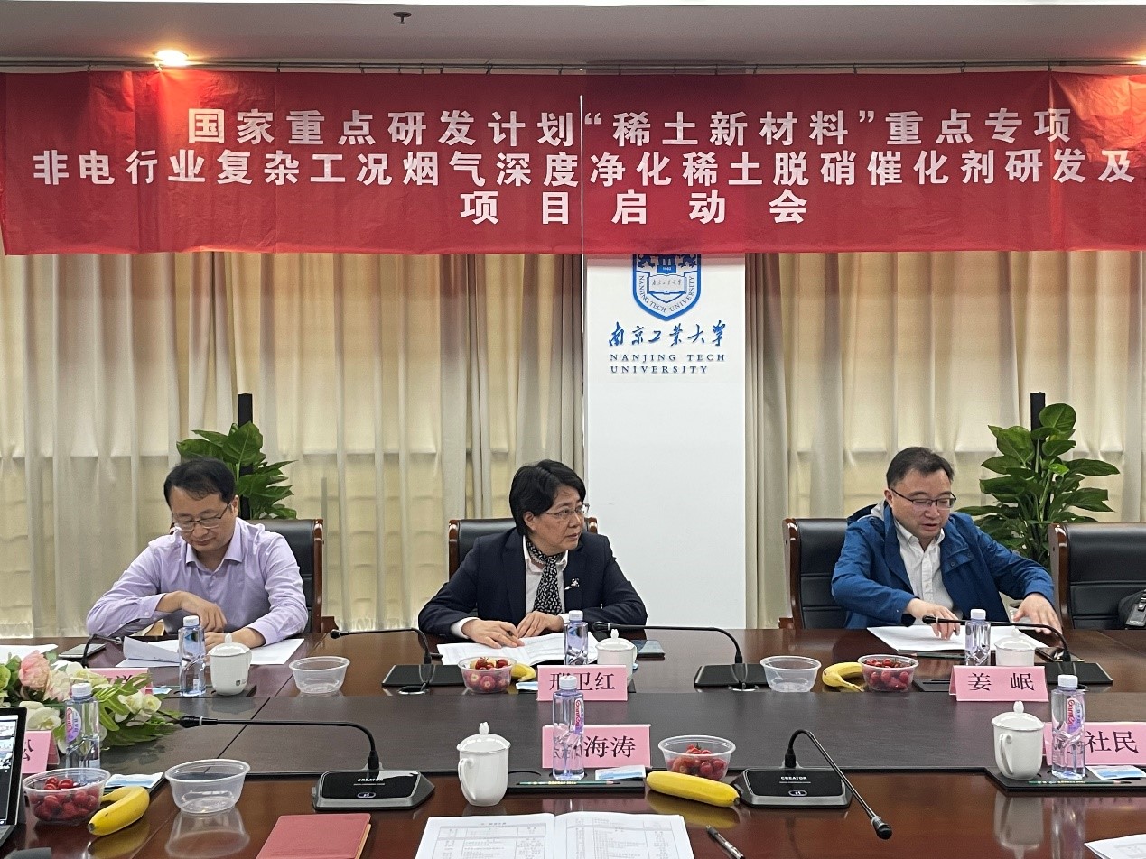 4月26日上午,由我校作为项目牵头单位、徐海涛教授主持的国家重点研发计划“非电行业复杂工况烟气深度净化稀土脱硝催化剂研发及应用”项目启动会暨课题实施方案论证会在南京顺利召开。会议采取线上线下结合的形式,工信部产业发展促进中心项目主管王尧,项目咨询专家组成员中国科学院生态环境研究中心贺泓院士、天津大学沈美庆教授、有研稀土新材料股份有限公司刘荣辉教授级高级工程师、中国稀土学会杨占峰研究员、中国科学院赣江创新研究院廖伍平研究员、中国科学院化学研究所宋卫国研究员、中国人民大学牟天成教授、北京化工大学刘志明教授、南京航空航天大学张丕宏副教授等应邀出席会议并指导。南京工业大学副校长邢卫红出席并致辞,科研院院长姜岷教授、金沙js4399首页副院长(主持工作)仲兆祥教授、项目团队技术骨干共60余人通过线上和线下参加会议。会议由姜岷教授主持。